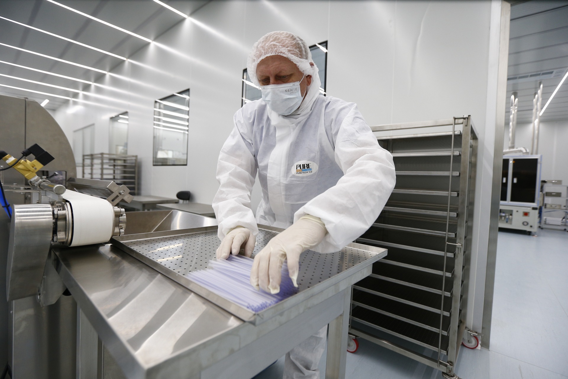 В производственных цехах компании «Апрель» запустили новую линию выпуска абсорбирующих пеленок. Процесс полностью автоматизирован, а сырье используют на девяносто процентов российское. В минуту изготавливают триста штук. В год – порядка восьмидесяти миллионов. В чистой зоне наладили производство стерильных катетеров и наборов для самокатетеризации, медицинских изделий для сбора биологических жидкостей. Их выпуск позволит кубанским медучреждениям полностью отказаться от импортной продукции.
