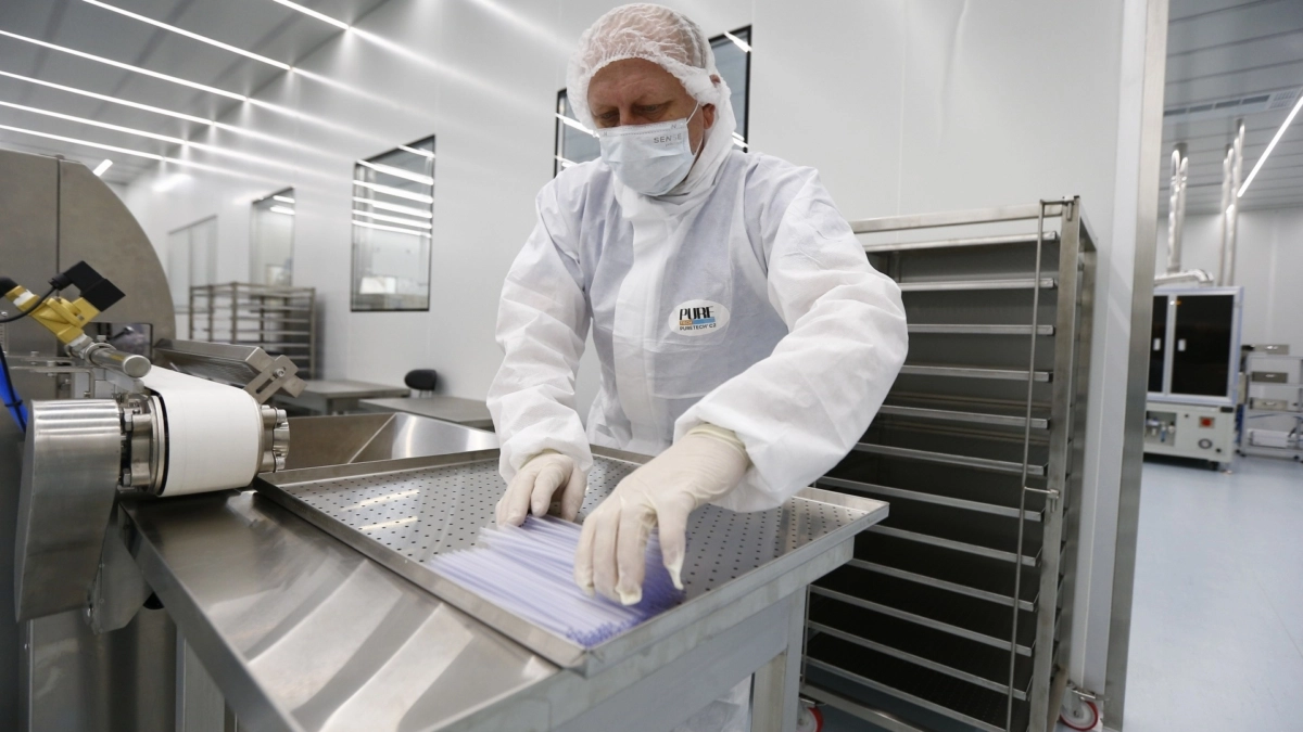 В производственных цехах компании «Апрель» запустили новую линию выпуска абсорбирующих пеленок. Процесс полностью автоматизирован, а сырье используют на девяносто процентов российское. В минуту изготавливают триста штук. В год – порядка восьмидесяти миллионов. В чистой зоне наладили производство стерильных катетеров и наборов для самокатетеризации, медицинских изделий для сбора биологических жидкостей. Их выпуск позволит кубанским медучреждениям полностью отказаться от импортной продукции.